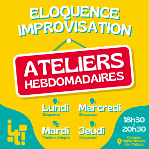 Venez pratiquer l’art oratoire dans une ambiance bienveillante chez Imp(r)ose-Toi ! Nos ateliers sont animés par des intervenants professionnels et sont ouverts à tous les étudiants de Lyon, débutants ou confirmés.