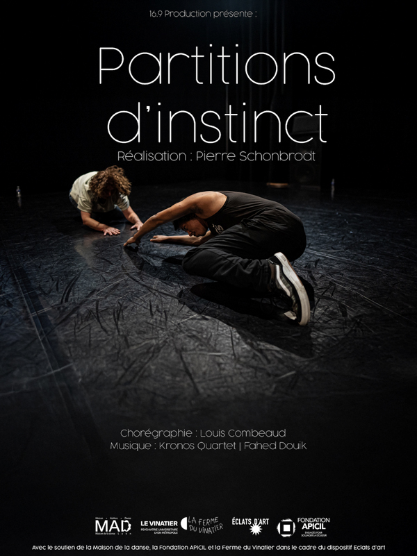 Synopsis : ? travers la danse et l’expression artistique par le mouvement du corps, le projet ? Partitions d'instinct ? a pour ambition d’accompagner des jeunes suivis par l’équipe de PEP’s (Programme d’intervention structuré pour les premiers épisodes psychotiques) de l’h?pital du Vinatier et des personnels soignants sur le chemin d’une découverte de soi et des relations aux autres qui se passe des mots et du langage.